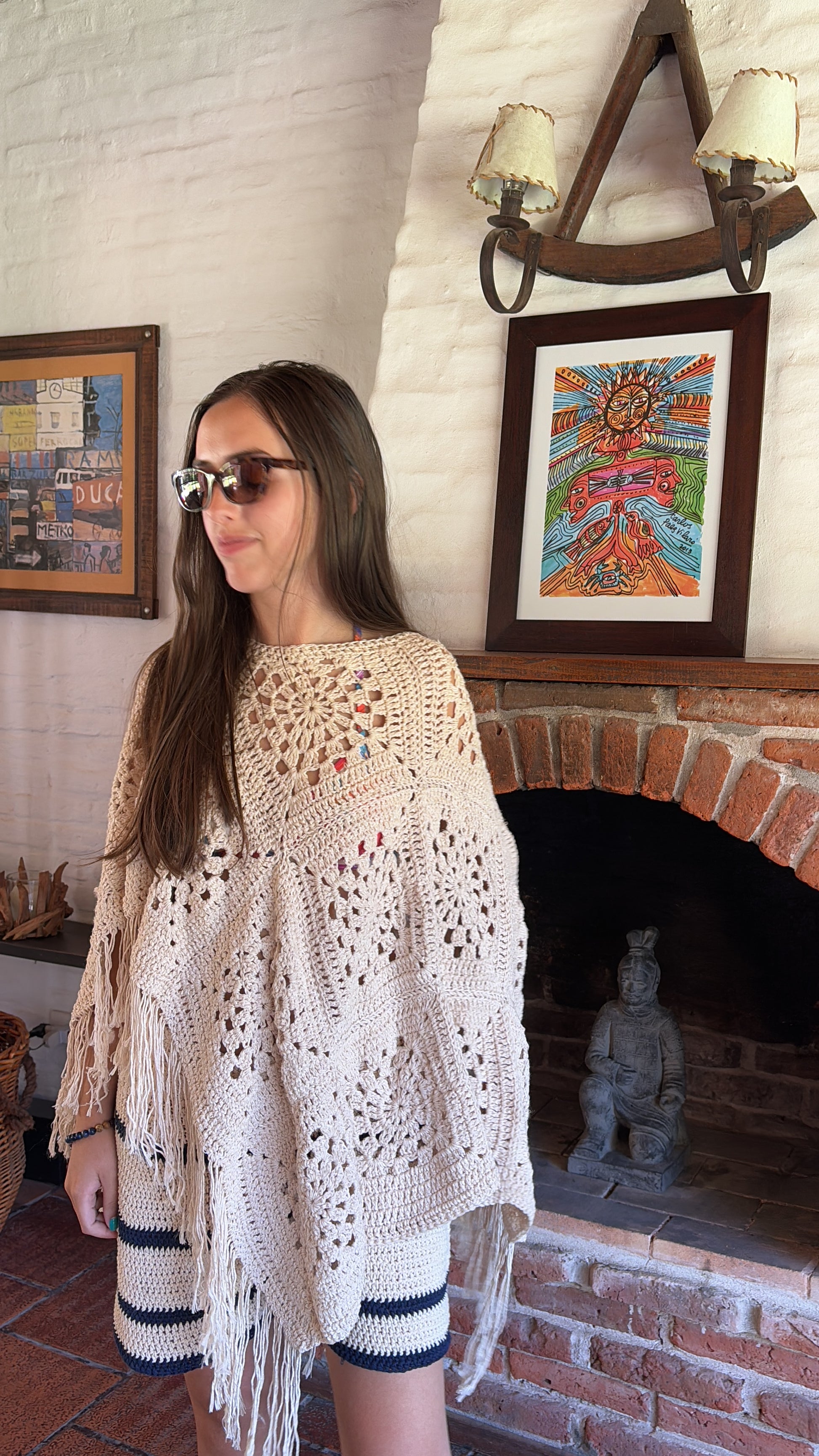 Poncho tejido a crochet en 100% algodón